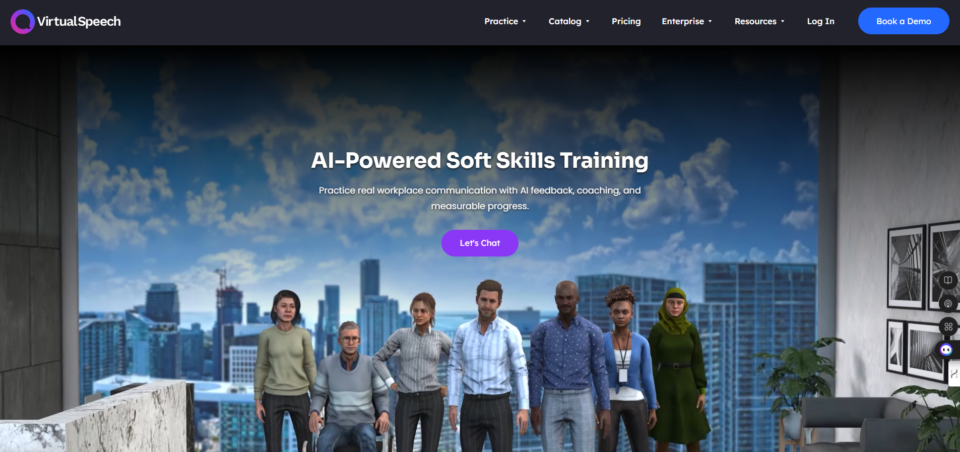 - Immersive VR environments that simulate real presentation and meeting settings.