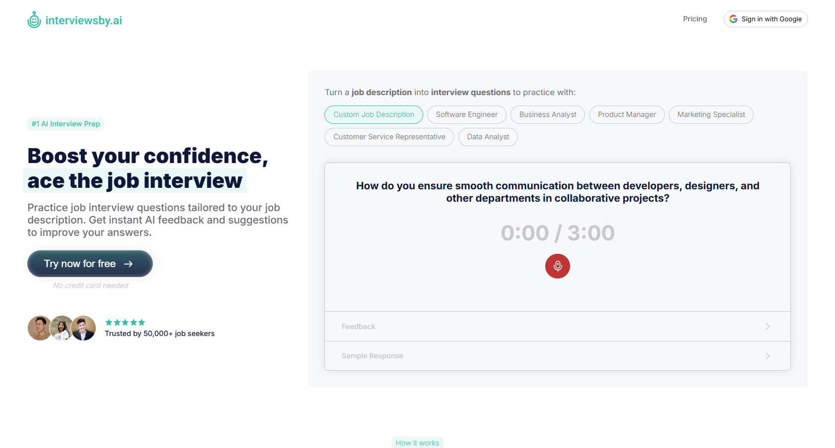 - Instant AI feedback with improved sample answers based on proven interview frameworks.